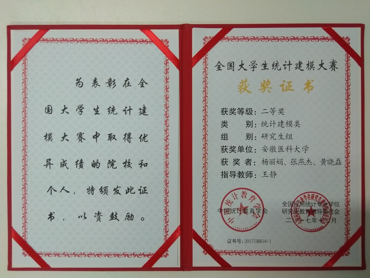 据中国统计教育学会2017年12月5号公布的消息,我学院流行病与卫生统计学系硕士研究生在2017年(第五届)全国大学生统计建模大赛中斩获佳绩。