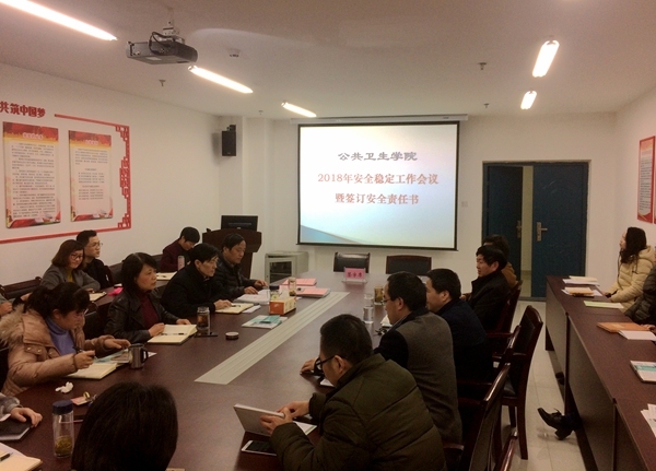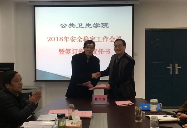 3月19日上午,公共卫生学院召开2018年安全稳定工作会议,签订安全稳定责任书,层层压实安全责任。