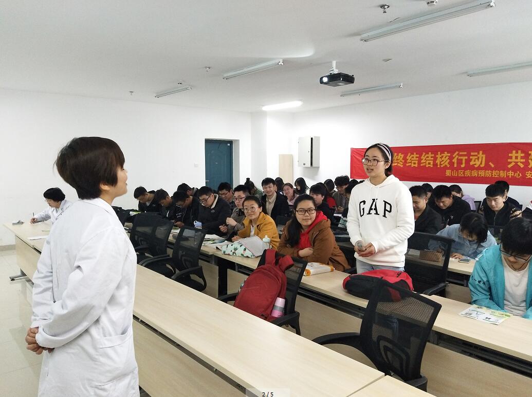 “微暖”志愿服务队志愿者分组在安医大校园内开展结核病防治宣传,宣传组负责向师生们发放宣传页,讲解结核病防治知识;竞赛组组织开展知识竞答,检验宣传效果。学院还邀请校医院贺晓琼医生进行结核病防治知识讲座。讲座上,贺医生介绍了目前结核病防控工作所面临的形势,详细讲解了结核病的传播途径和防治措施,让大家正确理解肺结核病。并从自己做起,从健康生活方式做起,养成良好卫生习惯。