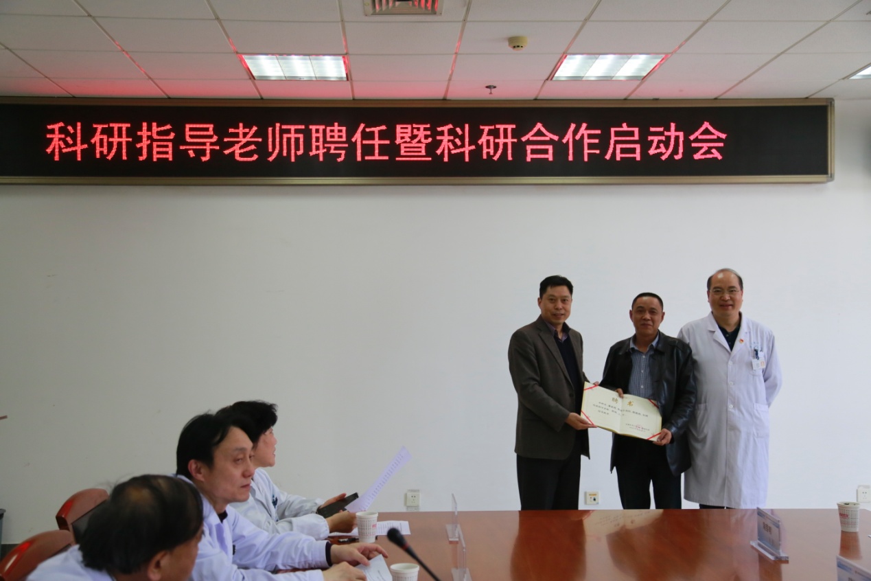 二附院鲁超院长向我院指导老师颁发聘书。他希望双方发挥各自的科研优势,形成稳定的合作关系,最终走向融合。通过合作,将医院科研方向由基础转向临床,并与临床治疗相结合,最终服务病人,提升医院的临床科研水平和影响力。