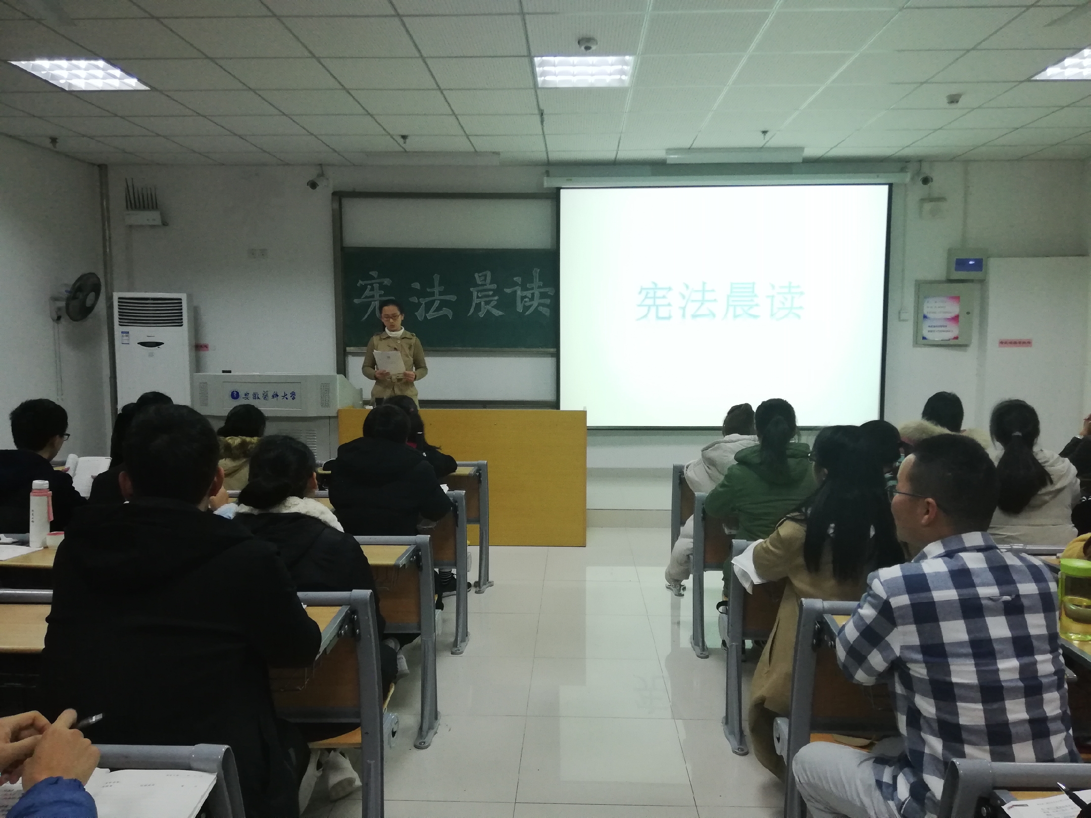 各小班围绕“弘扬宪法精神”开展主题班会,认真学习了宪法的结构和地位、宪法的制定和修改程序、国家宪法日的由来等内容。随后,大家结合时事新闻、典型案例展开热烈讨论,阐述了宪法与每个人的密切关系及自己对“宪法精神”的理解。同学们纷纷表示当代大学生作为祖国的未来和社会的骨干,需自觉把宪法作为从事各种社会活动的最高准则。