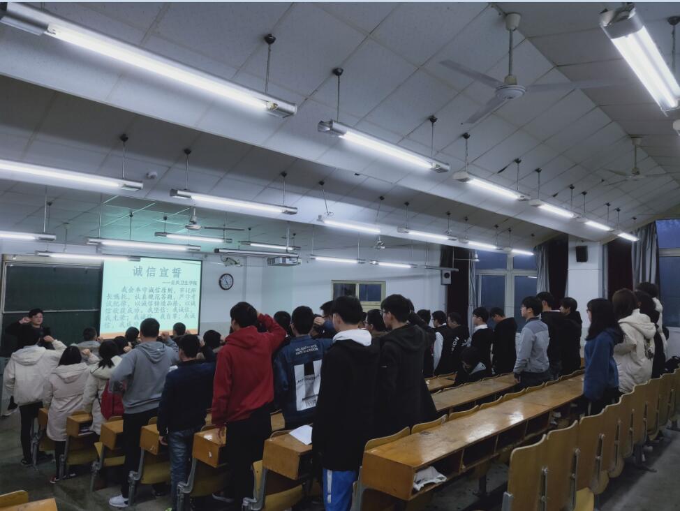 本次活动进一步强化了学生诚信考试的意识,为学院的学风建设筑起了一道“诚信、自觉、文明”的“警戒”线,营造了“诚信做人,用心备考”的积极氛围。(公共卫生学院 万书卉 陈道俊)