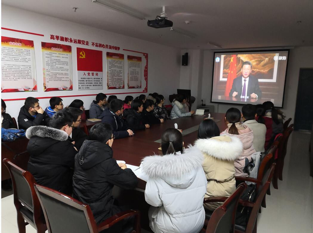 组织学生党员集中收看国家主席习近平发表新年贺词视频,感受领袖对人民深沉而绵长的牵挂和挚爱。习近平主席的讲话,朴实而接地气,深沉而有力量,他深刻阐述了过去一年国家的重大举措和重大收获,将大家的情感辐辏于为梦想打拼的每一个场景,让我们同国家的发展进步共情共鸣,同时也为每个人指明了新方向,提出了高要求。院党委书记宋玉梅希望党员同学深刻领会主席新年贺词精髓,把责任扛在肩上,用行动诠释初心,新的一年继续努力奔跑,做新时代的追梦人。