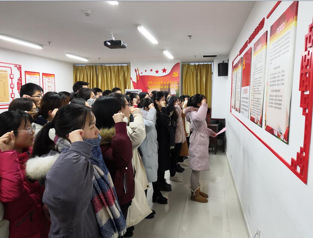 预备党员与全体老党员一起面对鲜红的党旗,庄严地举起右手,向党旗宣誓,表达了为共产主义事业奋斗终身的决心。支部书记向新党员同志们表示祝贺,并提出殷切希望,勉励大家做一名新时代的合格党员。