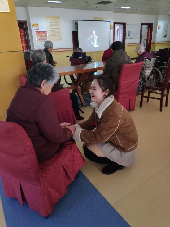 本次活动组织细致、分工明确。表演组为护理院的老人们唱起了《军港之夜》、《映山红》等经典曲目,跳起了民族舞蹈《多嘎多耶》,优美的歌声和优雅的舞姿换来了老人们阵阵掌声;手工组现场教老人们编织中国结,一针一线饱含耐心和爱心,一个个中国结不仅编织了大家的家国情怀,也将老人和志愿者的心紧紧系在一起;今年是中华人民共和国成立70周年,电影组为老人们放映了精挑细选的电影《建国大业》,老人们认真观赏,情到深处还会握着志愿者的手述说那一段段峥嵘岁月,放映结束后老人们自发起立鼓掌。