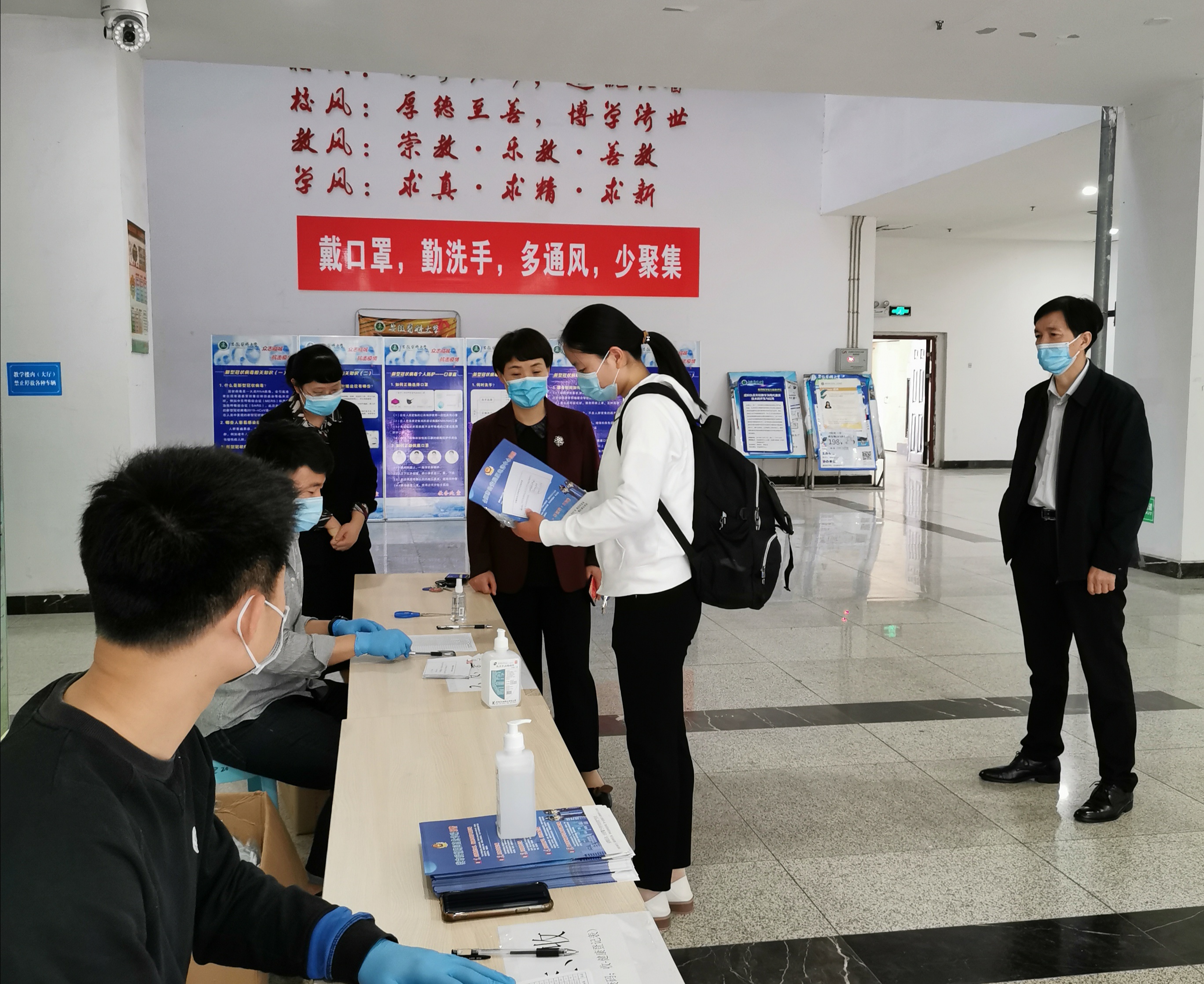 5月9日,学院党政负责人带队来到研究生返校报到点,关心询问学生返校方式,为返校毕业生送上了学校、学院精心准备的“爱心包”,包内装有防护口罩、体温计、返校后注意事项等。学院领导叮嘱同学们注意防护,有序返校、文明离校,并鼓励毕业生在这个特殊时期奔赴祖国需要的地方建功立业,与祖国和人民共克时艰。