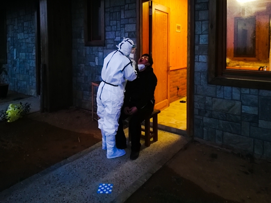 2月25日,青岛,即墨疾控中心工作人员在采集鼻咽拭子。人民视觉供图