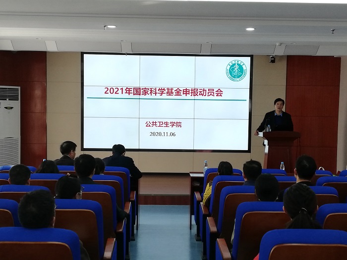 近日,公共卫生学院召开2021年国家科学基金申报动员会,启动新一年国家科学基金申报工作。会议由该院党委书记潘莉莉主持,院长江启成作动员报告,副院长徐德祥作专题学术报告。