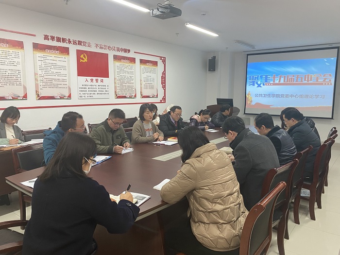 11月27日,公共卫生学院召开党委理论学习中心组会议,深入学习贯彻习近平总书记在党的十九届五中全会上的重要讲话精神和全会精神,并开展研讨交流、推动贯彻落实。该院党委书记潘莉莉主持会议。