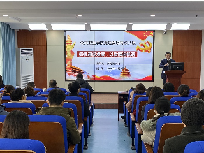 12月3日,公共卫生学院陶芳标教授为该院学科系相关负责人、青年教师等作了题为《抓机遇促发展,以发展迎机遇》的精彩讲座,该院副院长王华主持会议。