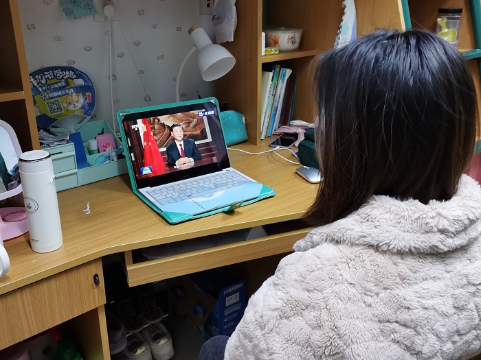 该院临床学院制学生虽在外地实习,但依然通过各种方式收看、收听习近平主席新年贺词,并自发在社交网络空间分享体悟。“2020年的最后一天,临床实习的第四个月,征途漫漫,惟有奋斗,新的一年,愿山河锦绣、国泰民安。”预防医学专业的刘学雯写下自己的期待。妇幼保健医学的蔡紫红也为新年“吹响”冲锋的号角:“博学而后成医,厚德而后为医,谨慎而后行医,看此时此刻,华灯初上,万家团圆,愿彼时彼地,练就本领,学成归来。”