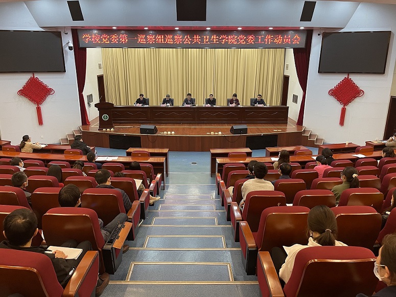 校党委第一巡察组副组长章镜及巡察组成员刘娜、程进松、李飞,公共卫生学院党政领导班子成员出席会议。学院内设机构主要负责人、党支部支委会成员、“两代表一委员”,教代会执委,高级职称人员,学生代表参加会议。