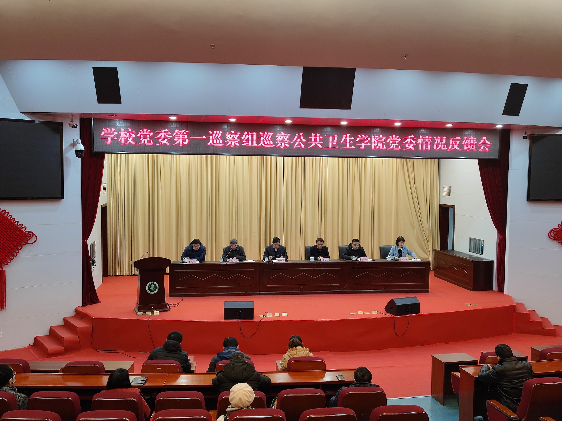 校党委第一巡察组副组长章镜、校纪委办内设机构负责人李晓松、巡察组成员及公共卫生学院党政领导班子成员参加会议。学院内设机构主要负责人、党支部支委会成员、“两代表一委员”、教代会执委、高级职称人员、学生代表等列席会议。