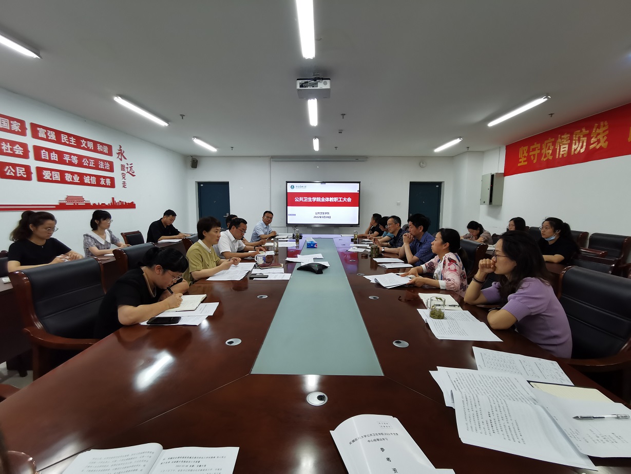 5月30日下午,公共卫生学院召开2022年第四次教职工大会,组织学习习近平在中共中央政治局常务委员会议上的重要讲话精神,学习郑栅洁在我校调研时的重要讲话精神,并部署学院近期重点工作,我院党委书记潘莉莉、副院长王华出席会议并讲话。