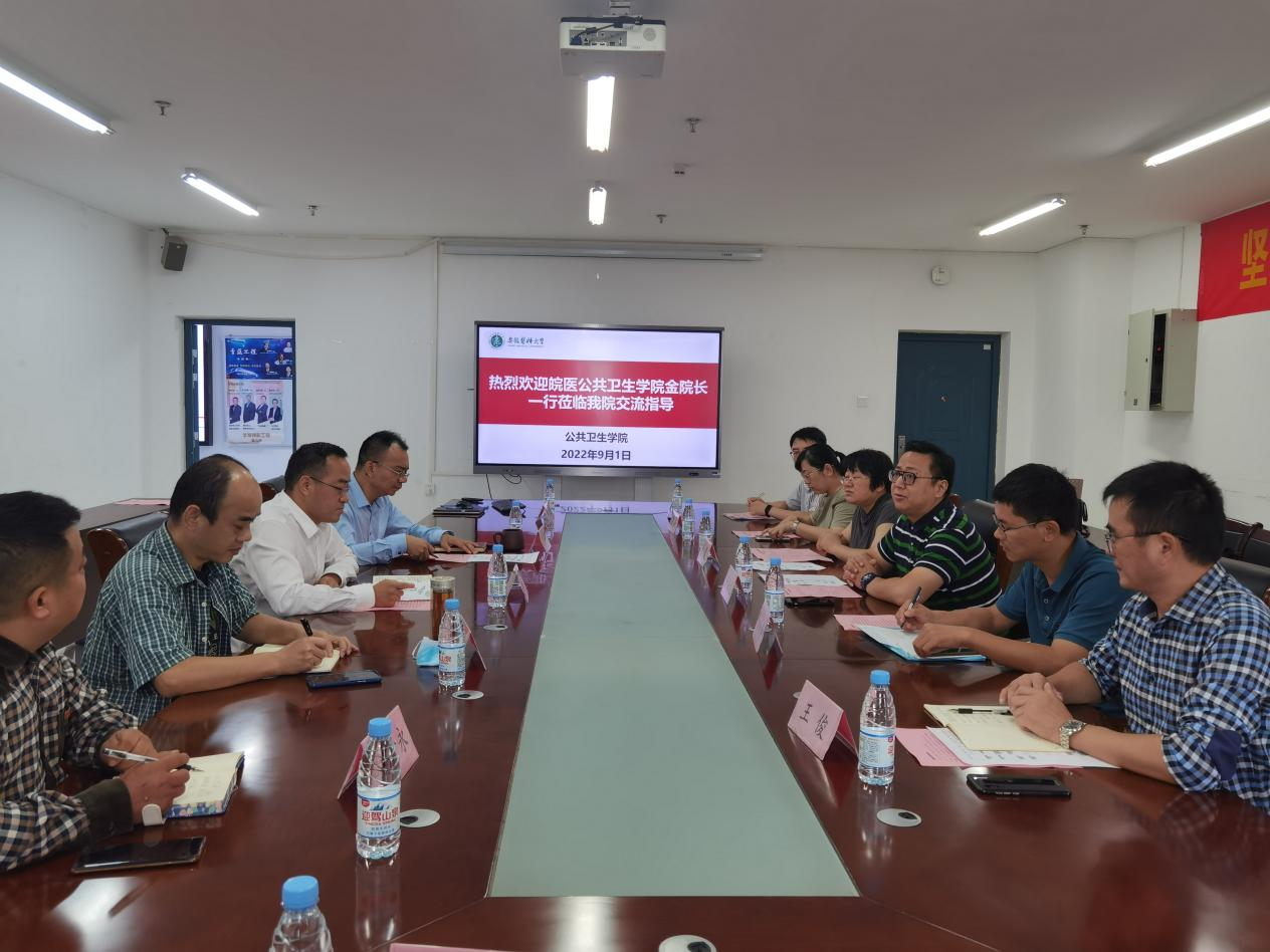 9月1日上午,皖南医学院公共卫生学院副院长金岳龙一行来我院考察交流,皖南医学院公共卫生学院袁慧、陈佰锋等老师参加。学院副院长王华,预防医学实验教学中心副主任刘开永,虚拟仿真实验实训教研室副主任陈文军等老师参与座谈会,万宇辉副院长主持会议。