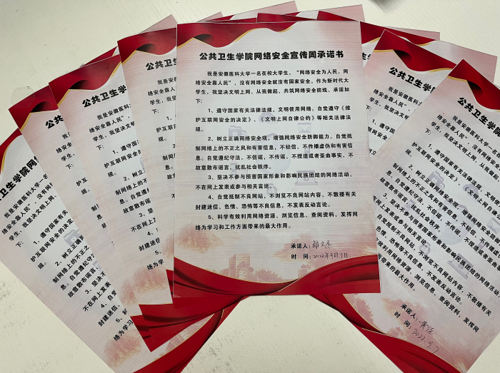近日,公共卫生学院开展网络安全周主题教育,积极宣传网络安全理念、大力普及网络安全知识、有效推广网络安全技能。