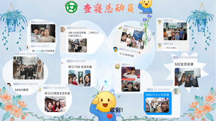 我院党政班子统筹部署疫情防控工作,落实包保责任,精准掌握包保年级情况,构建“学院党政班子-辅导员/学科系-团总支书记/年级长-安全教育委员/卫生健康委员-寝室长”五级责任体系,明确责任、落实到人,确保各项工作做精做实。寝室每晚“花式拍照打卡”,严查夜不归宿;安全教育委员、卫生健康委员坚持一日三检,收集二码,核验核酸报告;团总支成员协助辅导员完成疫情风险问题排查,每日统计上报“成长中的陪伴—动态管理一张表”,精准摸排掌握学生所在地点;疫情防控信息专员按时上报各项疫情防控数据,确保底数清、情况明、数据实。
