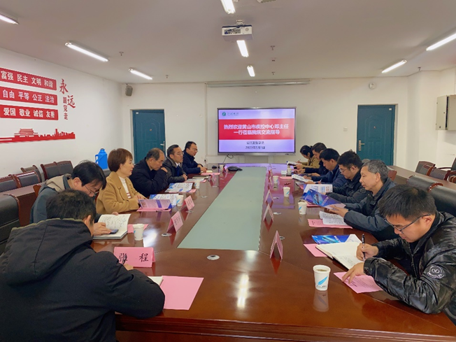 2月1日上午,黄山市疾控中心主任邓国强一行来院洽谈教学实践基地建设、科研合作等事宜。公共卫生学院党委书记潘莉莉致欢迎词并介绍双方参会人员,执行院长王华主持座谈会,副院长万宇辉、副院长杨万水参加会议。双方就教学实践基地建设、科研合作与转化、人才培养等方面展开充分交流。