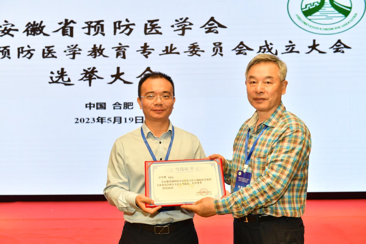 2023年5月19日,安徽省预防医学会第一届公共卫生与预防医学教育专业委员会成立大会暨公共卫生教育学术培训班在合肥举行。会议由安徽省预防医学会秘书长陈叶纪主持,安徽省预防医学会会长朱启星,安徽医科大学公共卫生学院党委书记马军成,副院长万宇辉参加会议。