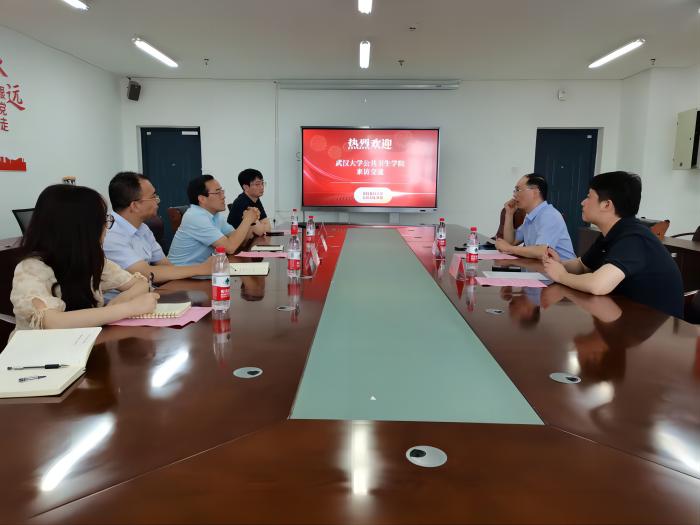 6月16日,武汉大学公共卫生学院副院长袁必锋一行来我院开展调研活动,我院执行院长王华主持交流会议。