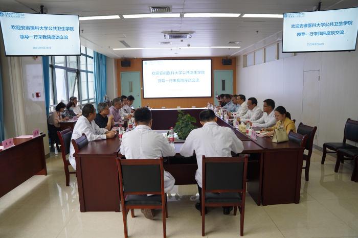 安徽省公共卫生临床中心副主任杨明珍、李永怀和我院副院长万宇辉、潘海峰以及双方职能部门负责人参加了座谈交流。(党政办 张程)