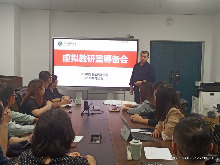 近日,公共卫生学院流行病与卫生统计学系融合虚拟教研室建设,开展集体备课、青年教师试讲活动。本次会议邀请了来自北京大学、复旦大学、中山大学和青海大学多名教授线上参会,为该院教师提供专业指导与建议。会议由该院副院长潘海峰主持。