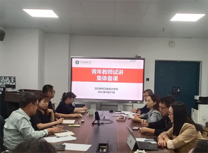 集体备课环节,该院倪婧副教授围绕《流行病学》的“筛检”部分内容,重点阐述课程的历史沿革、学情分析、教学目标、教学重点和难点、混合式教学方法等。青年教师试讲环节,宋健、马玉波两位新进青年教师围绕教学设计、教学内容和教学方式等,对流行病学和卫生统计学课程的相关内容进行了试讲。每位教师讲课结束后,各位专家教授就教师的授课内容、授课方式和语言表达等方面逐个进行了详尽点评,提出了针对性意见和建议,使青年教师包括学科系全体教师受益良多。