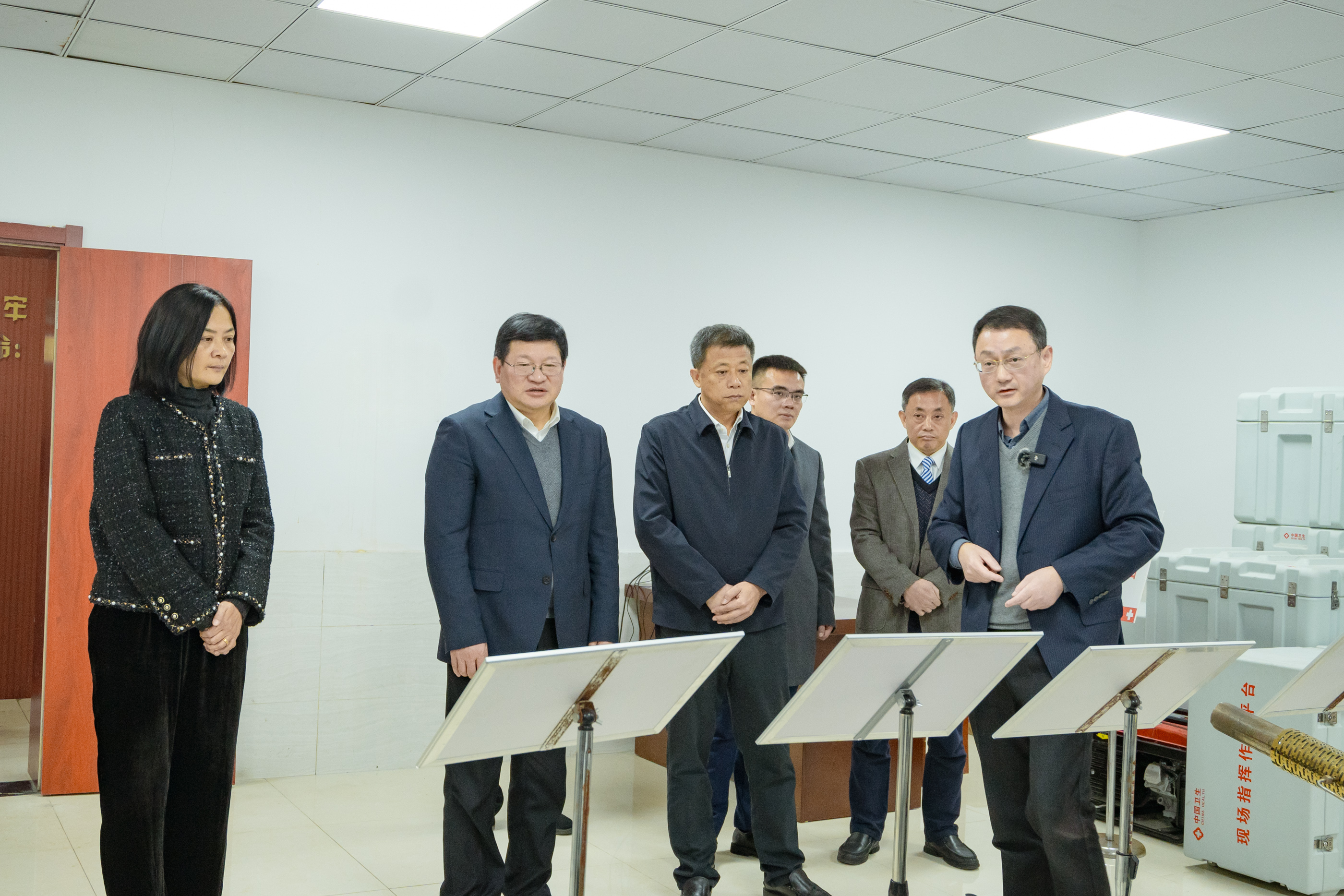 仪式后,葛斌陪同顾家山一行参观考察了马鞍山市疾病预防控制中心卫生应急指挥调度大厅、卫生应急操练培训室和微生物检验科等区域。
