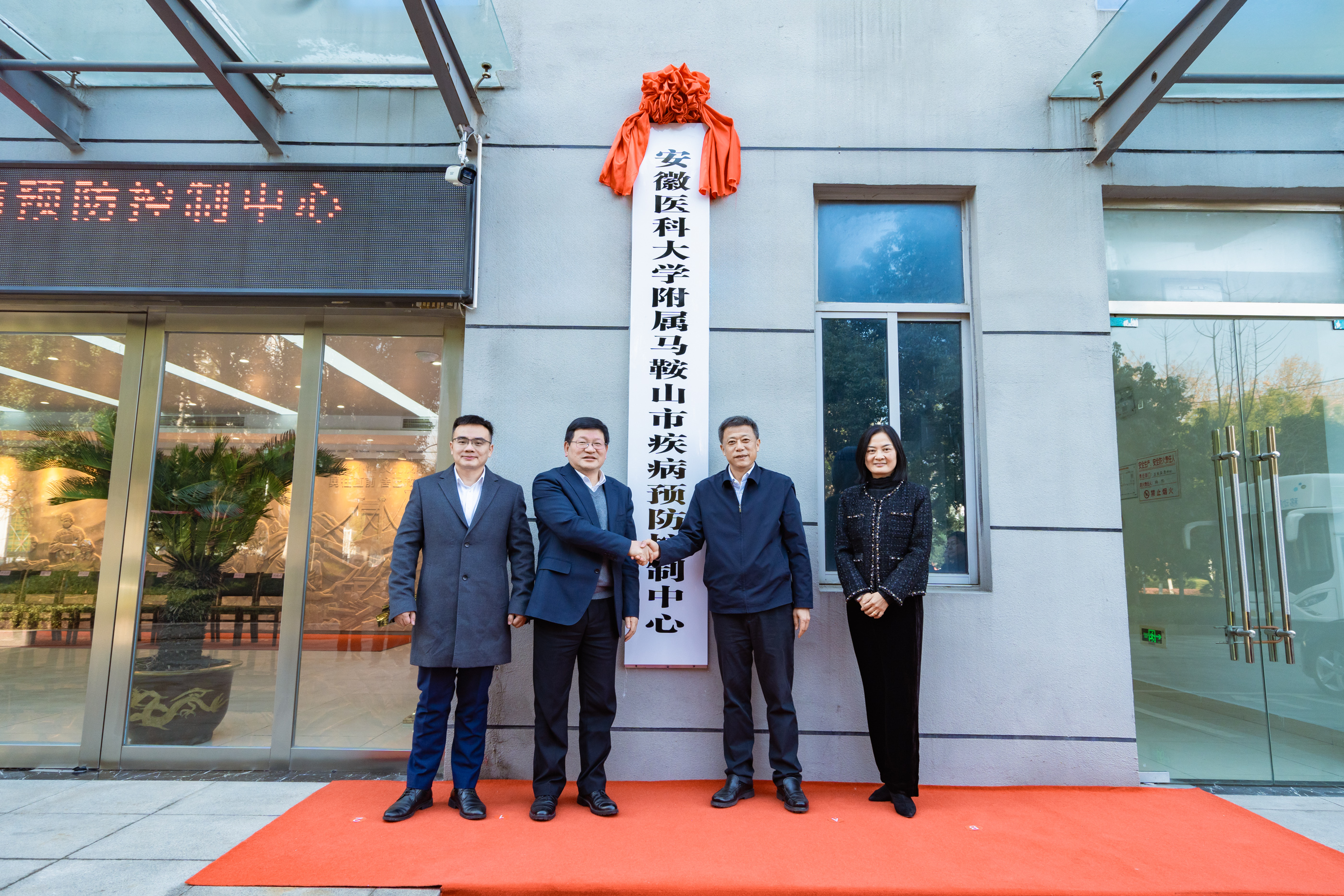 1月5日,安徽医科大学附属马鞍山市疾病预防控制中心签约揭牌仪式在马鞍山市举行。校党委书记顾家山,马鞍山市委副书记、市长葛斌出席仪式,并共同为附属马鞍山市疾病预防控制中心揭牌。马鞍山市副市长阚青鹤主持签约揭牌仪式。学术副校长张智宣读相关批复文件,并与马鞍山市卫健委党委书记、主任孙信滨代表双方签署合作共建协议。马鞍山市政府秘书长汪强出席仪式。我校相关职能部门负责人和我院相关院领导出席签约揭牌仪式。