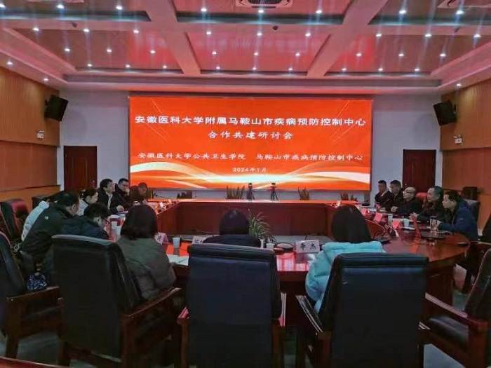 1月31日,我院与附属马鞍山市疾病预防控制中心举办合作共建研讨会。我院副院长杨万水带队参会,附属马鞍山市疾病预防控制中心主任陈建以及副主任娄金海、方大春出席会议,副主任朱明主持会议。