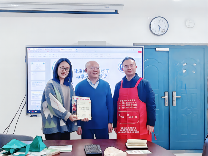 陈叶纪秘书长围绕“健康教育工作经历”与“学科发展”的主线与大家交流。他在上海医科大学接受了健康教育专业学习,在安徽省疾病预防控制中心的健康教育、环境卫生、传染病防治、慢性病防治等多个公共卫生岗位工作,具有丰富的健康教育实践经验。他与在场师生交流了学校健康教育、改水改厕健康教育、多个国际合作项目的健康传播、控烟、基本公共卫生服务项目健康教育、健康中国行动、慢性病防控的健康教育与健康促进工作,他的实践的体会是“公共卫生项目与健康促进理念相通,是一体两面”。他分享了编写的中小学健康教育教材、创作大量项目健康传播材料的体会,从预防医学会职责解读了科学创新与科学普及一体两翼的布局。陈叶纪秘书长强调健康教育专业应用广、实践性强,渗透公共卫生各方面工作,希望健康促进与行为学科系能够以科学普及和健康信息传播为基础,直面慢性病流行时代的挑战,探索智能化行为干预方法。师生要熟悉现实运行的健康教育各类形式,组织开展多样化的健康教育实践活动,既要关注个体行为的复杂性,更要为人群服务,研究与现实需求结合,提升专业成就感、认同感、荣誉感。他还简介了安徽省预防医学会,希望广大师生成为省预防医学会会员,在学会平台上结识志同道合的朋友,促进科研和科普。
