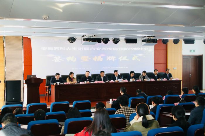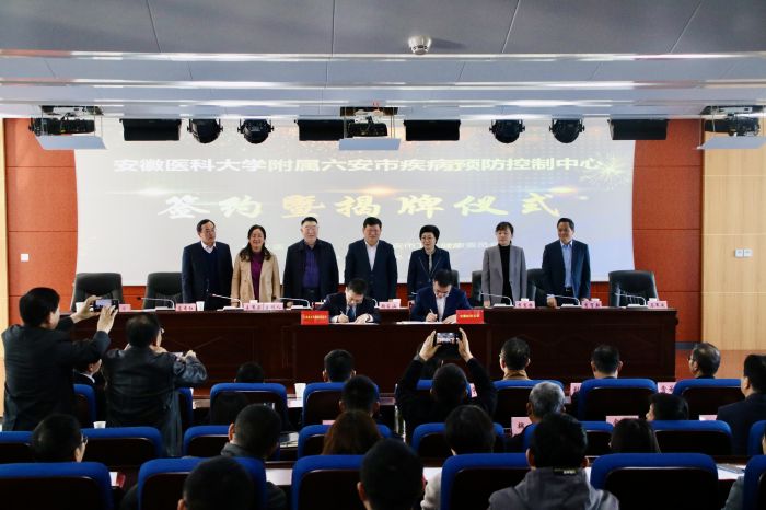 3月26日,安徽医科大学附属六安市疾病预防控制中心签约揭牌仪式在六安市举行。校党委书记顾家山与六安市副市长魏武共同为附属六安市疾病预防控制中心揭牌。副校长张智宣读相关批复文件,并与市卫健委党委书记、主任李育新,代表双方签署合作共建协议。签约揭牌仪式由市政府办二级调研员王有正主持。我校相关职能部门负责人和我院相关院领导出席签约揭牌仪式。