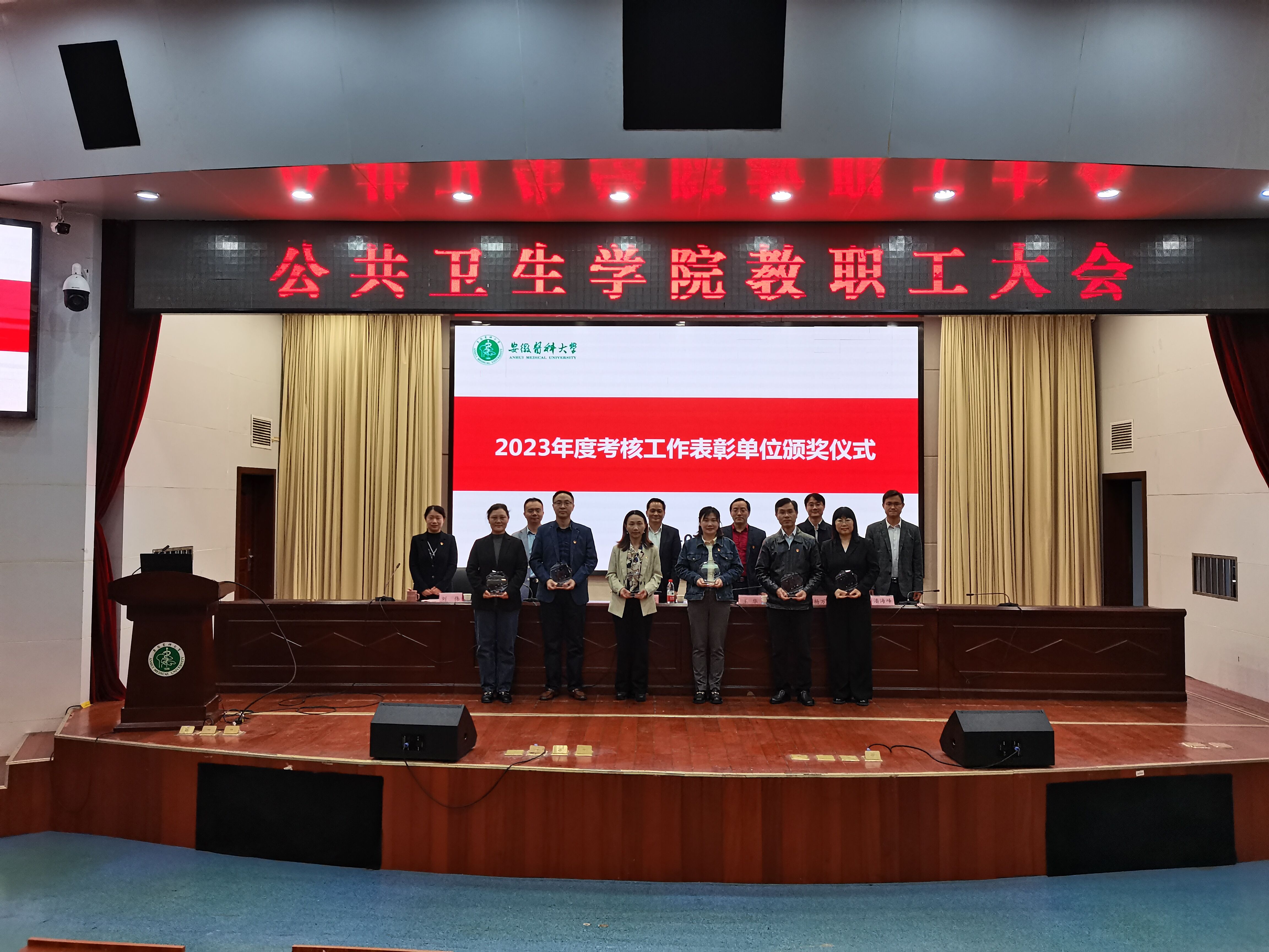 3月3日下午,公共卫生学院召开教职工大会,表彰2023年度学院考核优秀单位,推进落实新一年学院工作。我院党委书记马军成主持会议并讲话,执行院长王华对学院2024年重点工作提出要求。