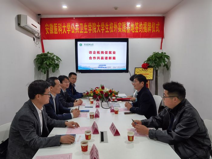 4月9日-4月10日,院党委书记马军成带队,前往合肥市包河区疾病预防控制中心与安徽优崔星生物科技有限公司开展大学生校外实践基地建设与“访企拓岗”专项行动,拓展学院毕业生就业渠道和岗位资源。包河区疾控中心党支部书记夏俊瑞与优崔星生物科技有限公司董事长胡昌昌出席会议。