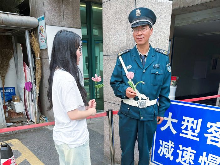 学院开展劳动教育主题班会,组织观看《中国梦·劳动美 》《大国工匠》等节目,通过劳动模范的先进事迹,发挥榜样引领作用,引导青年树立正确的劳动价值观。以“安全和谐文明友善”宿舍创建为目标,院领导任组长,组织各年级辅导员和班主任深入宿舍开展卫生检查,督促同学们发挥主人翁精神,养成良好的宿舍劳动习惯。学院将主题团日活动和劳动实践课程相结合,划分片区,包保责任,组织学生打扫学校公共区域,捡拾丢弃的矿泉水瓶,清理草坪上的棉絮枯叶,通过实际行动不断强化大学生的社会责任感和社会公德心??埂八湍阋欢湫『旎ā崩投谂幕疃?,一根根彩色的扭扭棒在同学们的手中翻转折叠变成一朵朵栩栩如生的郁金香,送到食堂工作人员、保安、宿管的手中,饱含着全体公卫人对劳动者崇高的敬意和深深的祝福?!暗谝淮问盏酵鞘止け嘀幕ǘ?,十分感动,感谢同学们对我工作的理解,我会好好收藏这多郁金香的”其中一名保安说道。