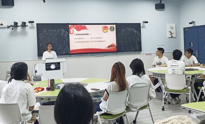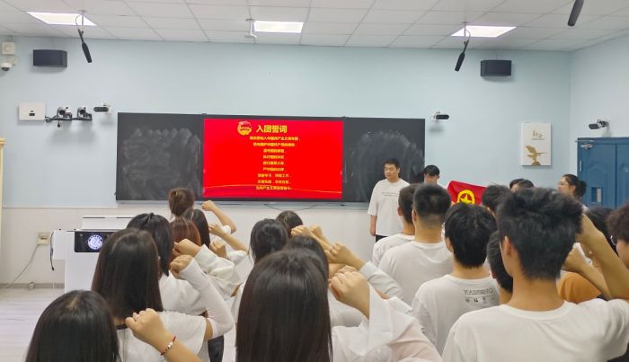 学院还以团支部为单位带领团员重温入团誓词,团员们面向团旗,紧握右拳,许下慷慨激昂的青春誓言。团支书宣读新团员名单,带领新团员学习团章,佩戴团徽并合影。新老团员代表依次发言,振奋人心,催人奋进。支部还组织了基础团务知识竞答,引导团员深刻理解团的光辉历史。