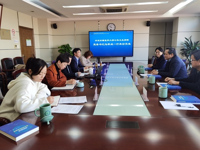 交流中,马军成介绍了公共卫生学院的历史沿革、学科建设、科研成果、专业设置和人才培养等方面情况,希望通过此次访企拓岗专项行动与企业建立更深入的合作关系,实现人才培养、人才测评与人才输送一体化建设,努力形成助力毕业生高质量就业与用人单位获取所需人才的双赢局面。