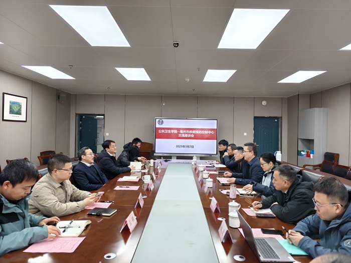 3月7日上午,亳州市疾病预防控制中心主任赵玉锋一行来我院交流科研合作事宜。我院院长王华、副院长潘海峰参加座谈,副院长杨万水主持会议。