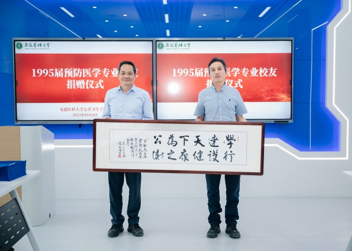 活动尾声,学院向每位校友赠送一份精美的纪念品,校友代表向学院赠送了一份饱含深情的礼物——院训牌匾,以此表达对学院的美好祝愿,希望广大公卫学子牢记“学达天下为公,行护健康之卫”的院训精神,为我国公共卫生事业添砖加瓦,祝愿母院在高质量发展的道路上不断迈上新台阶。